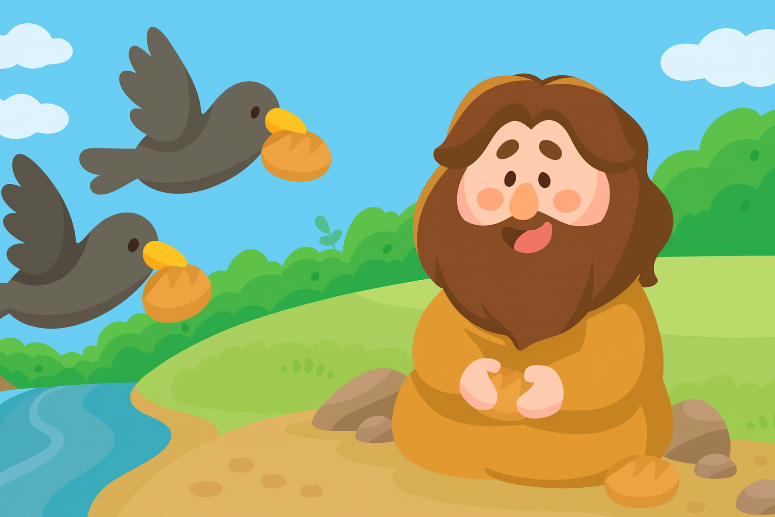 When Elijah was in need, God sent ravens with food and gave him water from a brook. God cared for Elijah, and He cares for us too.